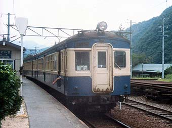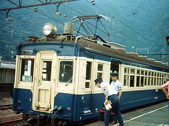 駅の名前は、たぶん『門島』。クモハ53+クハ68の2両編成で、たぶん天竜峡行きの下り列車だったと思います。 とにかく、飯田線はせまい渓谷沿いに建設されていて、景観は乗っていてもよく眺められます。人家も少なく、今でも赤字は間違いないのかな。でも、週末の特急などは立ち客が出るほどの盛況ぶり。豊橋から豊川、新城まではけっこう利用客もいるので、トントンなのかなぁ。 |