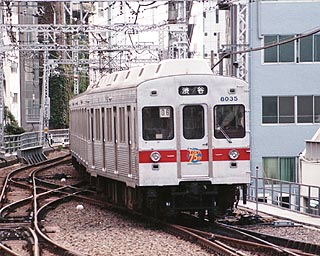 この渋谷駅構内のポイントは、かなり曲線がきつく、ダイヤの間隔がなかなか短くできない要因のひとつとなっています。ラッシュ時など、上り列車が入線待ちで止まることもしばしば。 |