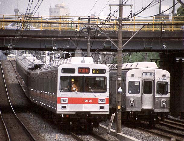 すれ違う目蒲線の7560がなんとも時代を感じさせます。