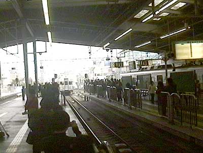 降車ホームで待っていてね、ということなので、まんなからへんで待つことに。ワクワク。